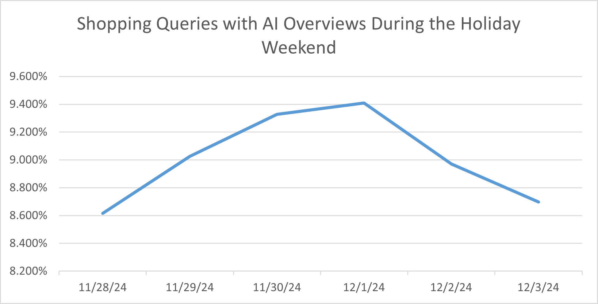 The speed at which AI Overviews adapted to changing user behavior during Black Friday/Cyber Monday reveals how critical real-time monitoring has become. Different product categories showed distinct patterns of adaptation, and these changes happened in real-time as shopping behavior evolved.