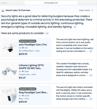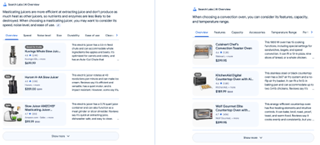Specific product searches generated AI Overviews that helped users comparative shop faster