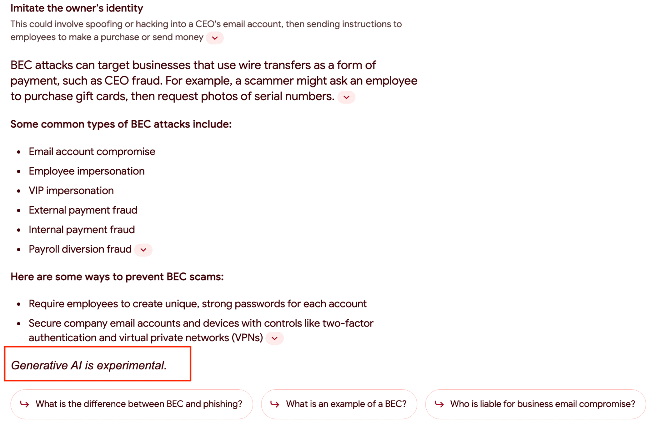 Since Google rolled out SGE, it has supplied certain queries with warnings about the nature of the results. These warnings mostly concern content that could be misconstrued as medical or financial advice. Warnings are also issued for queries that could potentially relate to illegal activities or things that may be dangerous. However, a new warning emerged in April that seems to be broadly applied. Now, Google is reminding users that Generative AI is experimental: