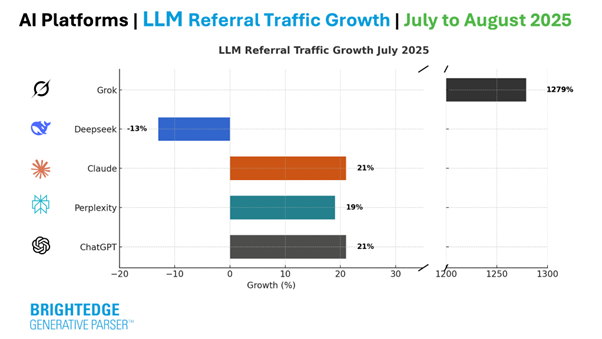 - Grok's Explosive Growth: While starting from a small base, Grok achieved a remarkable 1000%+ growth in July. If this trajectory continues, it could emerge as a serious contender in the AI search space.