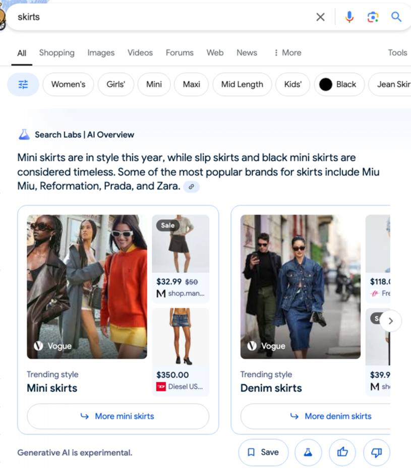 The extra real estate is also being used to incorporate more visual elements. The trend toward larger, richer images—especially for product-related searches—is becoming increasingly important. For eCommerce marketers, this means ensuring that product images are optimized not just for quality but for visibility within AI Overviews’ product carousels. High-quality images are essential to drive clicks, particularly when they are used in carousels alongside other products.