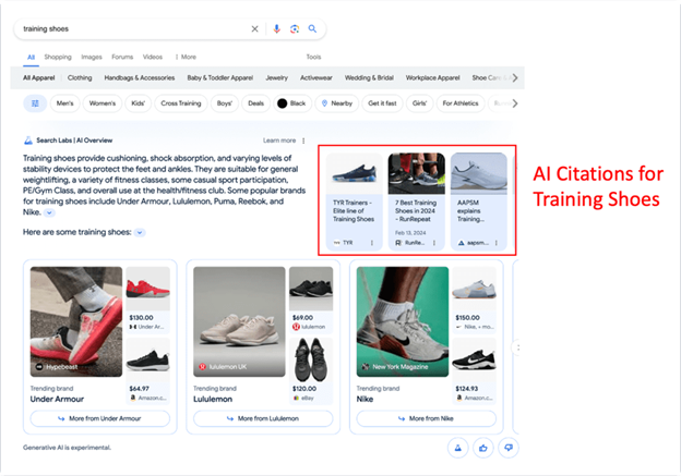 We observed a 172% increase in product carousels for apparel-related queries. This suggests that, rather than focusing on a single product, AI is increasingly providing users with broader choices and comparisons, offering a more comprehensive view of available options.