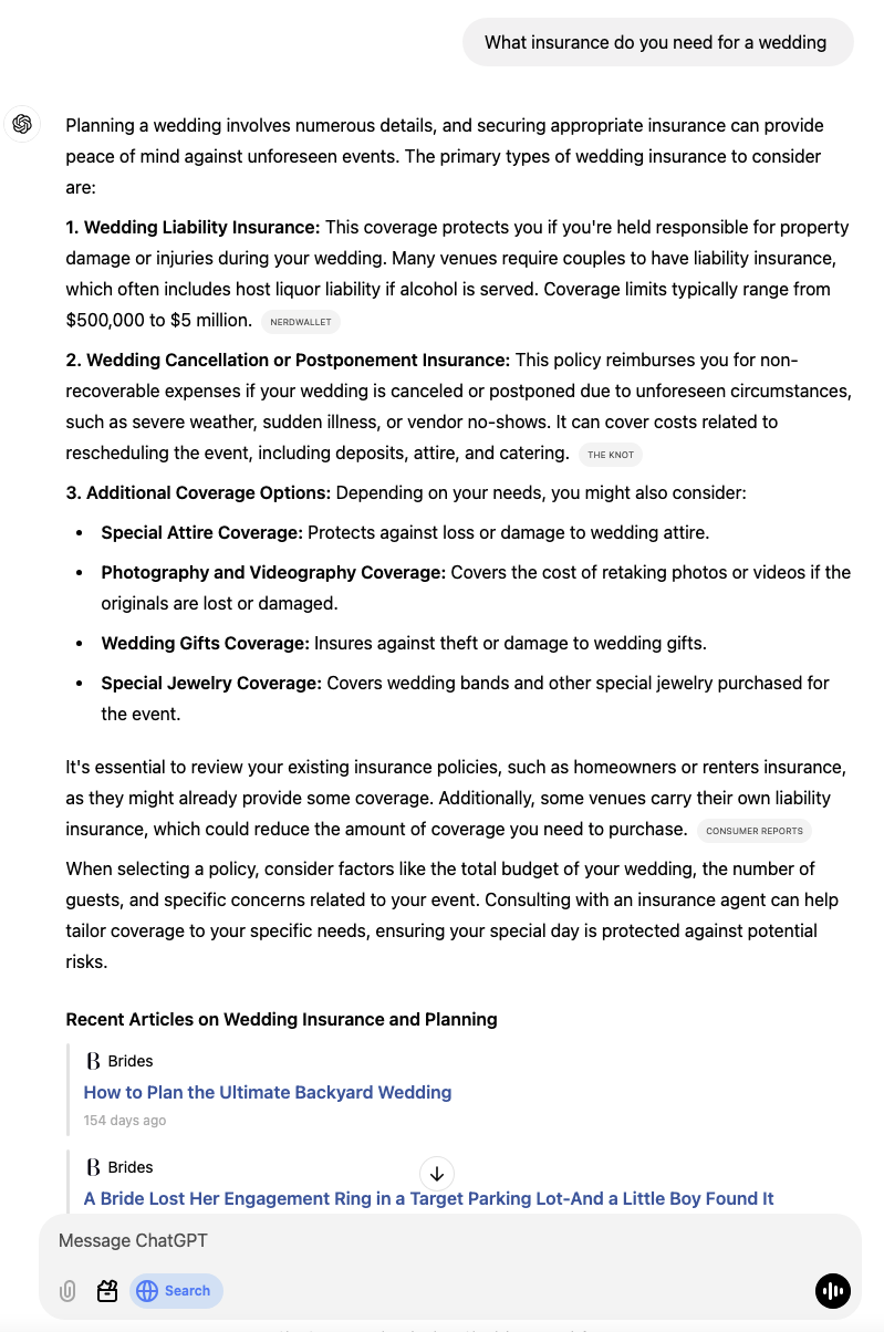 Insurance queries like “What insurance do you need for a wedding” revealed different approaches to complex financial products: