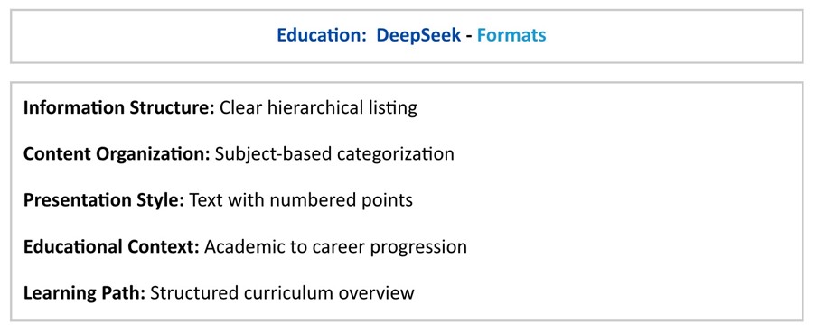 - Knowledge Framework Building: DeepSeek builds understanding systematically, preferring sources that: