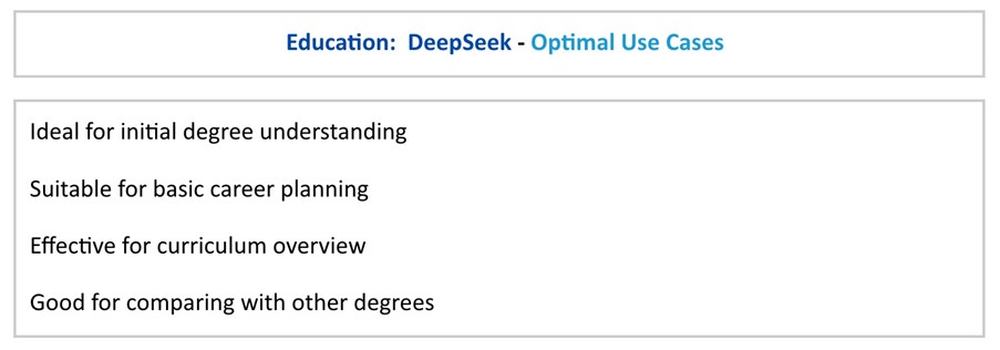 - Systematic Knowledge Building: Unlike other AI search technologies, DeepSeek constructs understanding by systematically building knowledge frameworks. Our analysis shows it excels at educational queries, local information validation, and complex purchase decisions - areas where comprehensive understanding matters more than quick answers.
