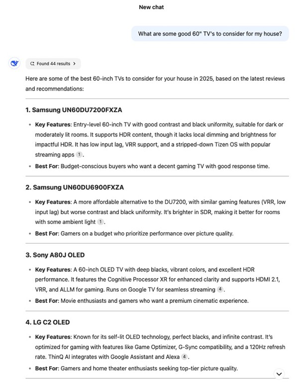 Imagine you are a marketer for a company that sells 60-inch TVs, and you want your product to be cited in DeepSeek for the query: