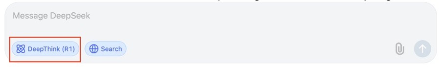 DeepSeek's "DeepThink" button displays the chain of thought and reasoning used to derive this answer.