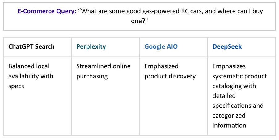 Unlike AI search platforms like Google AI Overviews, ChatGPT, Perplexity, and Bing Copilot, DeepSeek takes an open-source approach while prioritizing contextually rich responses and lower processing power. But beyond these differences, our analysis reveals three other fundamental ways DeepSeek disrupts the search experience: