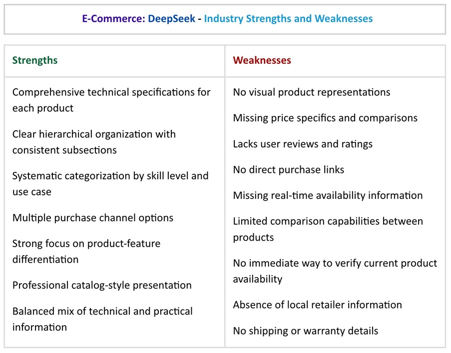 - Provide clear purchase channel information and buyer guidance. DeepSeek distinguished between different purchasing options (online retailers, local shops, direct) and matched them to appropriate buyer segments.