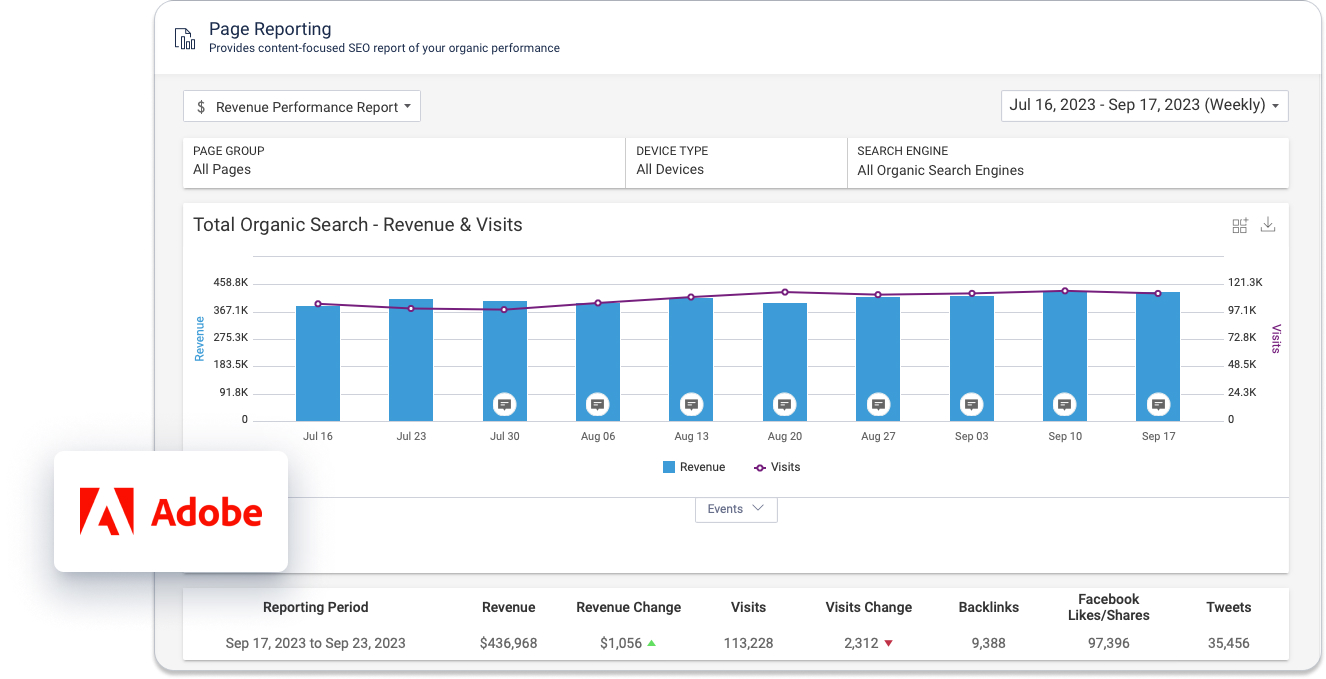 BrightEdge offers a robust integration with the Adobe Analytics platform. This fully customer-configured and controlled integration marries Adobe Analytics data with BrightEdge SEO data, enabling you to identify user intent, prioritize SEO opportunities, and accelerate website traffic, conversions, and revenue generation with your web analytics system-of-record.