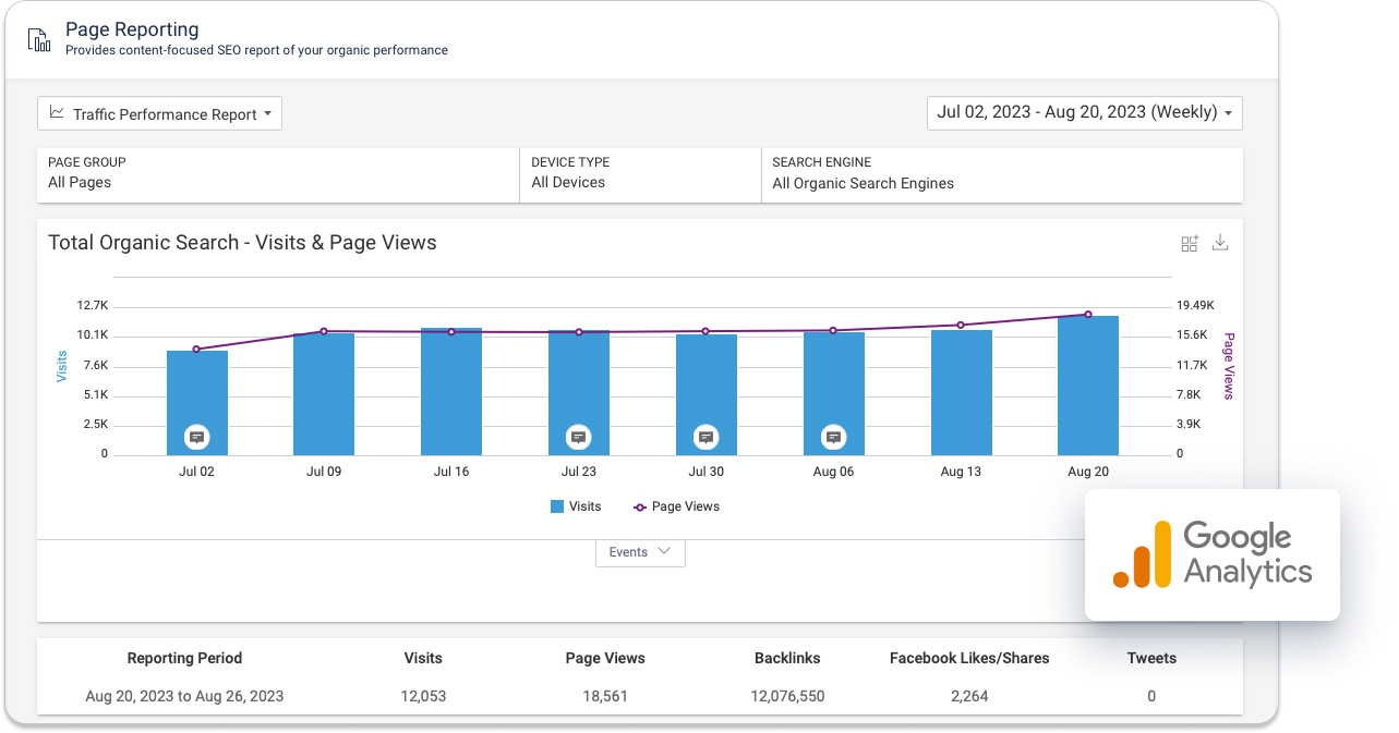 Our Google Analytics (GA) integration allows you to combine business metrics like revenue and site visits with SEO metrics to measure and improve your site’s overall ROI. This integration comes standard for all BrightEdge customers. The BrightEdge platform supports the latest version of Google Analytics – GA4 – giving you enhanced reporting capabilities. Customers using the paid version of Google Analytics – GA360 – are also supported.