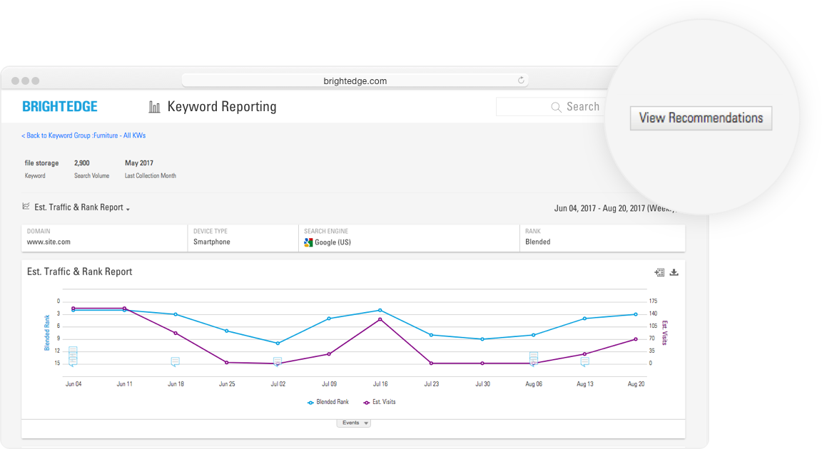 Natively integrated within the BrightEdge platform, Keyword Reporting delivers analysis and recommendations that drive action. Simply click on any keyword to get recommendations for the content you wish to rank for. Pull keyword data into StoryBuilder dashboards and reports to understand and communicate the impact of topic demand and content performance on the business, then take specific action to maximize performance.